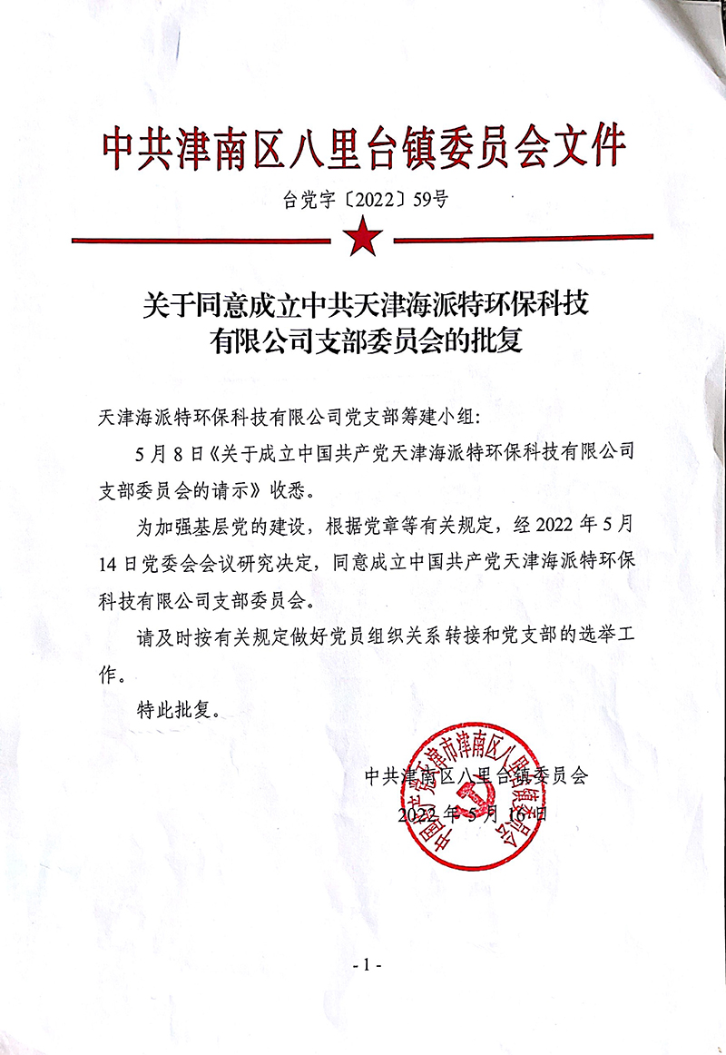 在慶祝中國共產(chǎn)黨建黨101周年之際,根據《中國共產(chǎn)黨章程》、《中國共產(chǎn)黨基層組織選舉工作條例》,經(jīng)中國共產(chǎn)黨天津市津南區八里臺鎮委員會(huì )批復同意,中國共產(chǎn)黨天津海派特環(huán)??萍加邢薰局Р课瘑T會(huì )正式成立。7月4日,中國共產(chǎn)黨天津海派特環(huán)??萍加邢薰局Р课瘑T會(huì )成立大會(huì )暨第一次黨員會(huì )議隆重召開(kāi),會(huì )上投票選舉出趙艷華同志擔任黨支部書(shū)記。八里臺鎮黨建指導員、八里臺工業(yè)園區黨群服務(wù)中心王玉璋、劉婷、段兆爽3位同志受邀參加,公司董事長(cháng)趙艷華、副總經(jīng)理李亮及全體黨員出席,會(huì )議由李俊新主持。